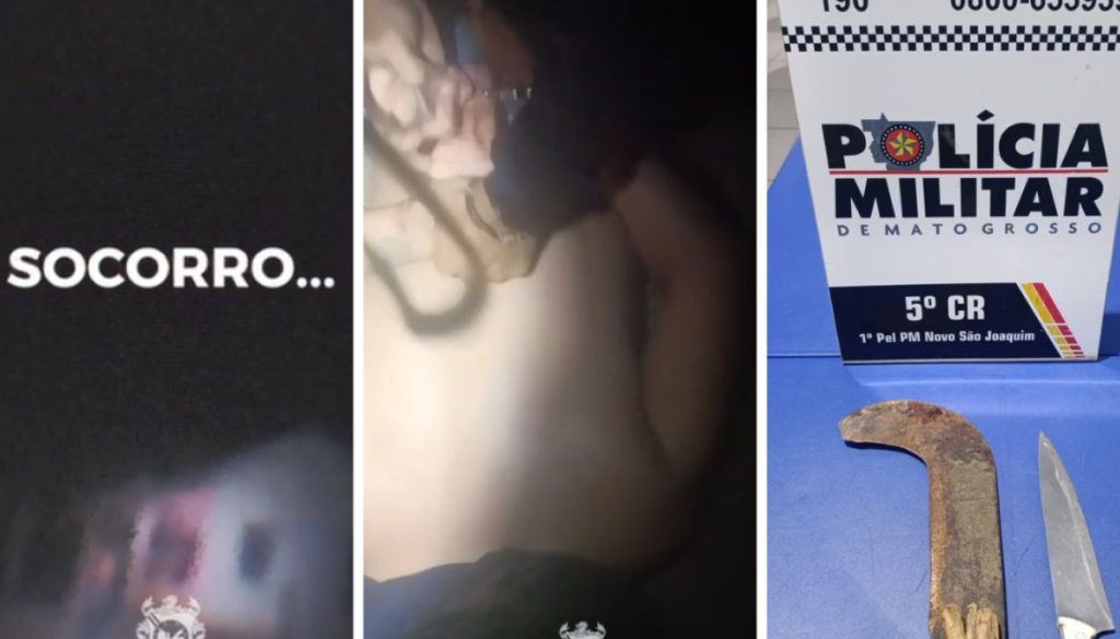 No local, os policiais encontraram uma faca e uma foice com vestígios de sangue, além de sinais de arrombamento e manchas pelo chão da residência. A mulher recebeu atendimento inicial na unidade de saúde da Vila Itaquerê e, em seguida, foi encaminhada ao Hospital Municipal de Novo São Joaquim. O filho mais velho também passou por avaliação médica.